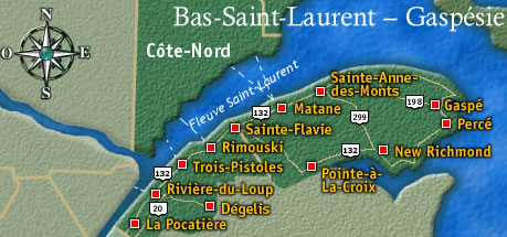 Nous sommes partis de Gaspé, et avons emprunté la route 132 qui suit la rive nord de la Baie des Chaleurs (côte Gaspésienne sud). Quand nous sommes arrivés à Pointe à la Croix, nous avons emprunté le pont reliant le Québec au Nouveau Brunswick.