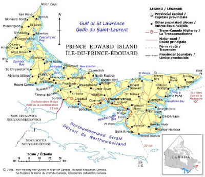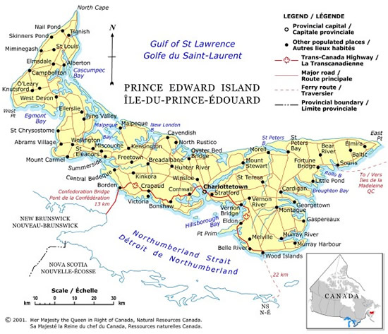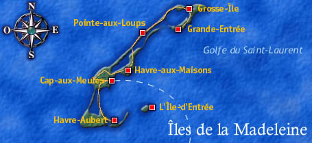 Ce pont de 13 km nous mène à Borden sur l'I.P.E de la nous avons suivi la transcanadienne direction Souris, en passant par la capitale de l'I.P.E Charlottetown nous avons traversé Cardigan, Fortune Bridge pour enfin arriver au débarcadère de Souris et de là nous avons pris la traversée avec nos bécanes pour une durée de 5 heures et nous sommes débarqués à Cap aux Meules aux Iles de la Madeleine ... |