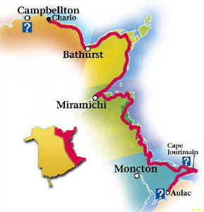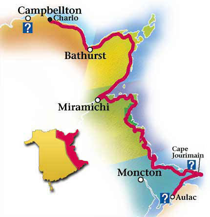 Baie des Chaleurs en passant par Bathurst, Caraquet, Shippagan, Shédiac, pour enfin arriver au pont de la Confédération