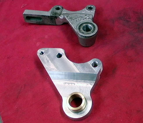 En haut, un support de frein du commerce.