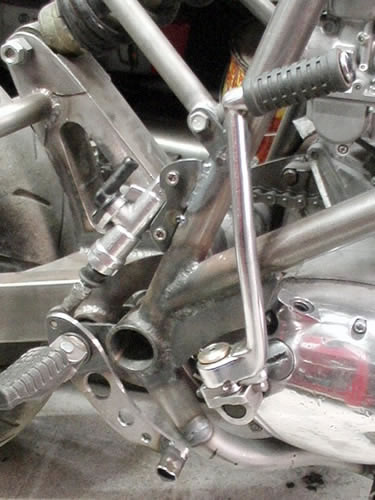 L'ensemble pédale maître cylindre monté sur le cadre.
