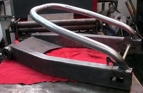 Le bras oscillant, et la rouleuse de tôle en fond .