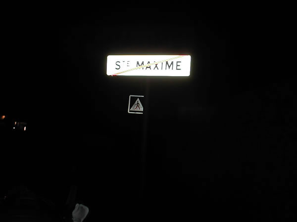 Le retour à la nuit ... Nous sommes encore loin, on distingue mal le panneau !