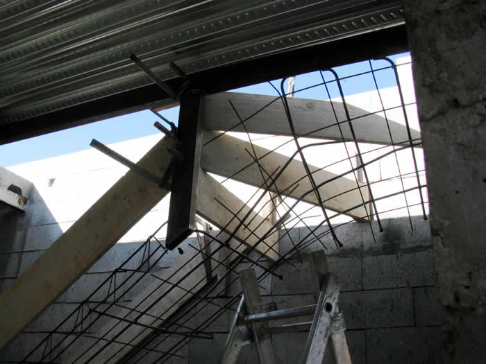 Les contres marches du quart tournant sont fixés sur le mur.
