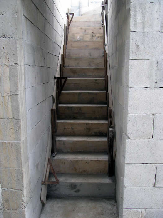 Les contres marches bien visibles, fixées sur les planches latérales.