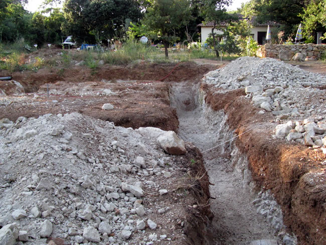 Finition des fondations avec : pelle, pioche, et marteau piqueur...
