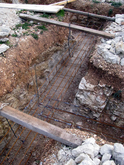 Suspension des longrines 20x35 en lieu et place de cales en fond de fouille.