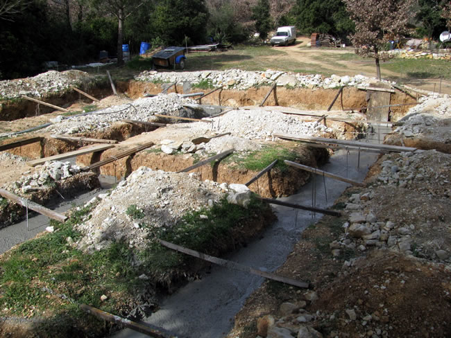 Bétonnage par toupies de 4 m3.