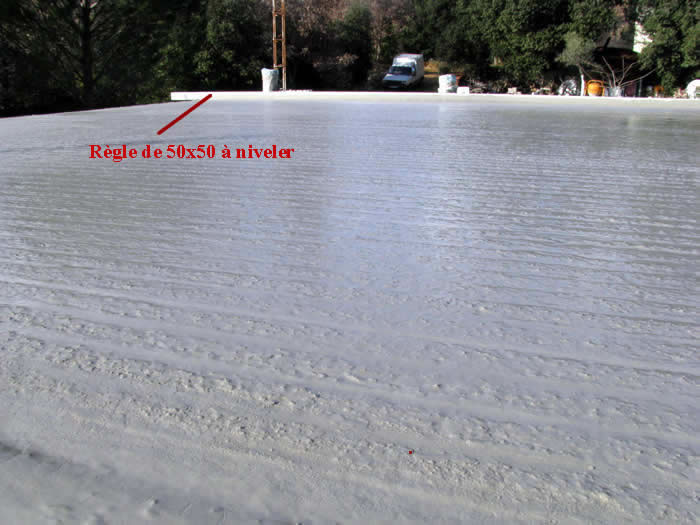 Ensuite vient le nivellement... Effectué avec un profilé de 50x50 en acier