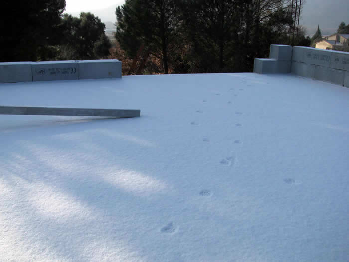 Après la neige, un chat a laissé ses traces. Preuve que le plancher est solide !
