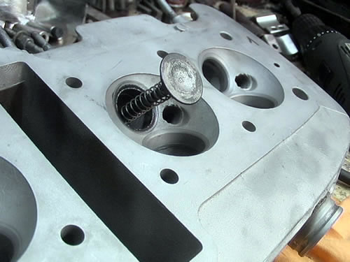 Le ressort est placé sur la queue de la soupape .
