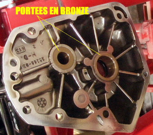 Sur le carter, pas de cage à aiguilles, mais des portées en bronze .