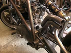 cette image, le parcourt sinueux des tubes d'échappements sur l'arrière du